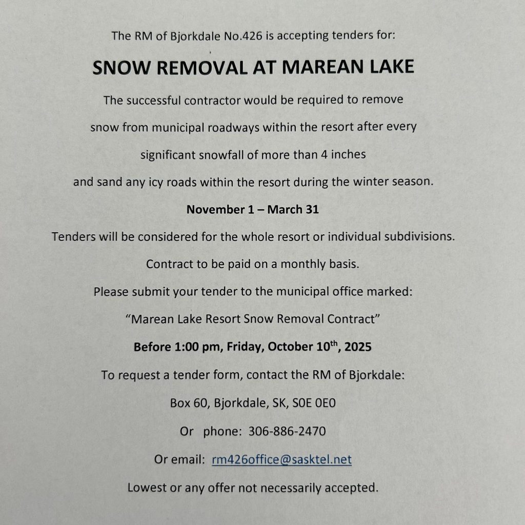 This applies to all land within the RM of Bjorkdale No. 426, including the resorts at Marean Lake, and will remain in place until further notice when the fire risk is reduced.